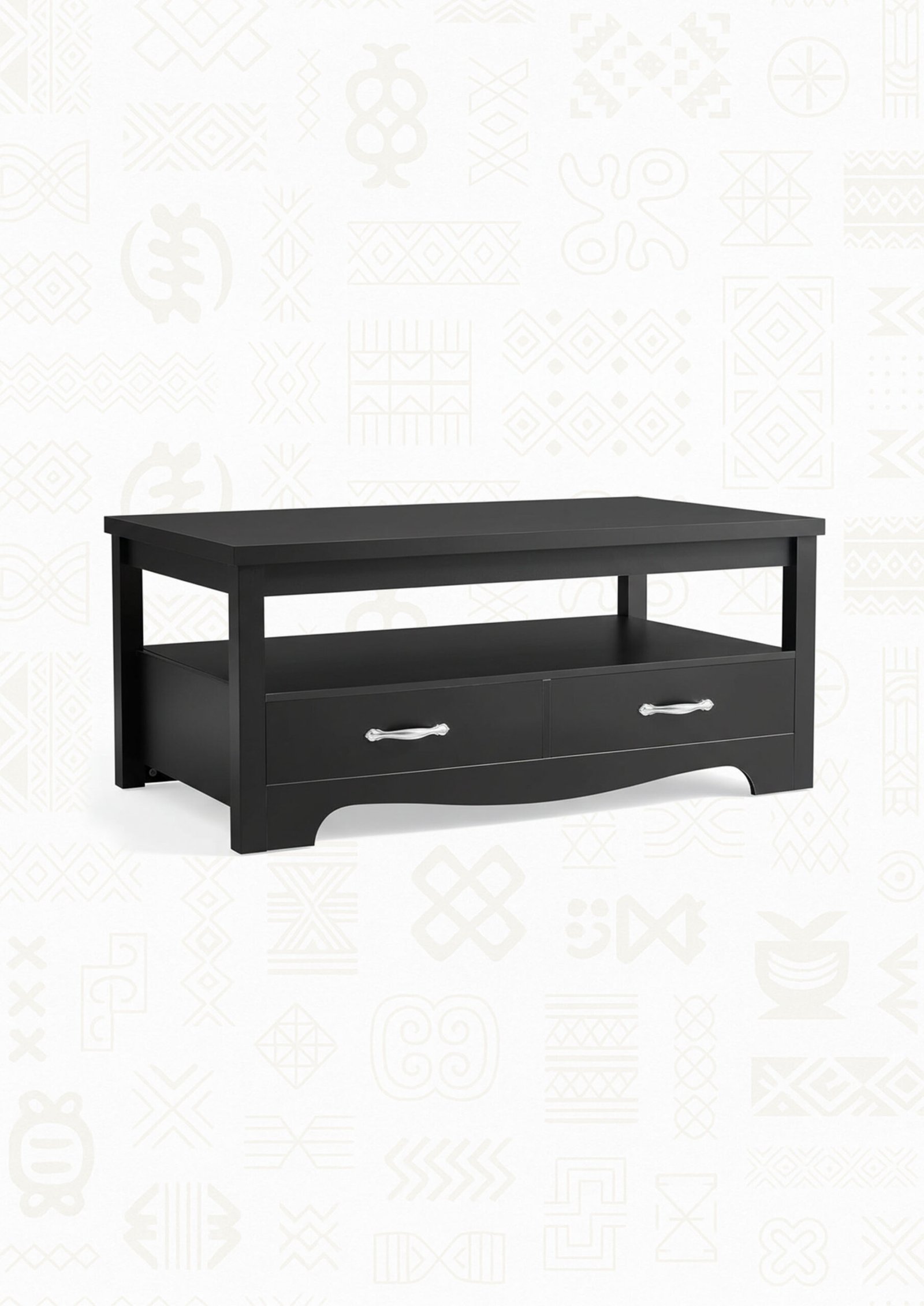 LINSY HOME Living Room, Coffee Table with Drawers, BLACK ,Open display area, Multiple storage drawers, authentic farmhouse design, Solid wood constuction